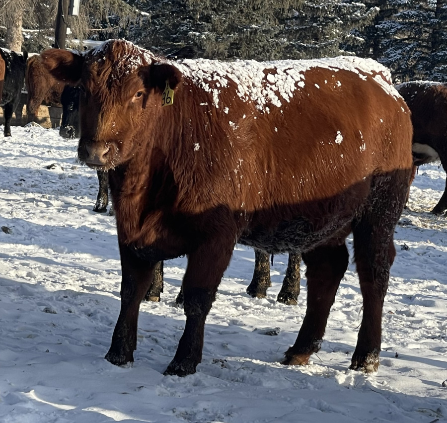 Bred to a Howe Coulee Big Rock Red Angus Heifer Bull, full vaccination program