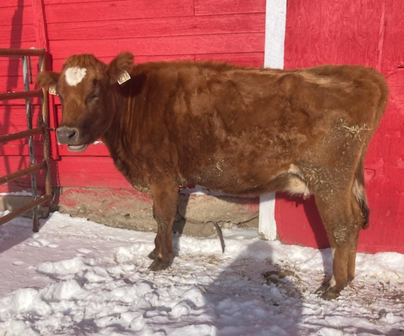 *3rd calving JerseyXRed Angus cow - observed bred July 23